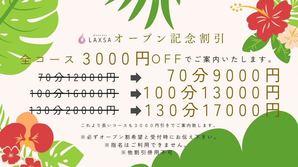 9月より営業を続けてまいりましたが博多MEN'S SPA laxsaは2025年12月31日をもって閉店致します。短い間でしたが多くのお客様にご愛顧いただきましたこと、厚く御礼申し上げます。